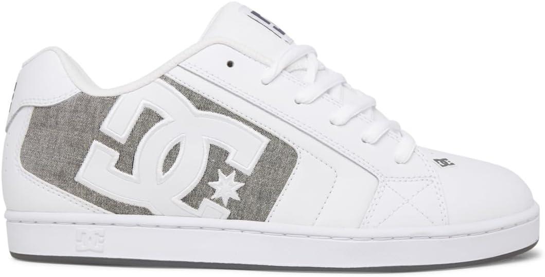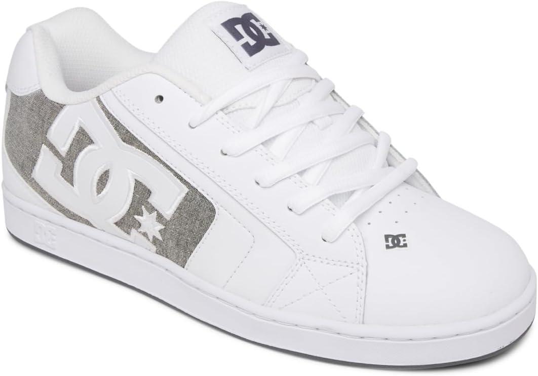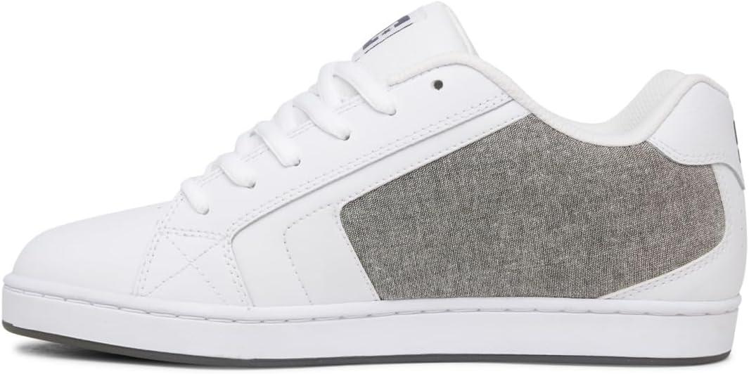 The Net sneaker from DC sports an edgy vibe whether you're on or off your board. Thickly padded linings keep you feeling good while the low profile and bold color accents add that certain “kick” to your kicks. A grippy rubber outsole offers durability.